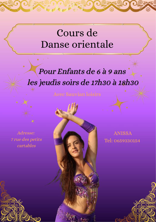06. octobre 2025 Il reste encore quelques places... … pour le cours de danse orientale pour enfants de 6 à 9 ans. Anissa vous attend les jeudi soirs de 17h30 à 18h30, au numéro 7, rue des petits cartables à Sauvian. Alors, qu’attendez-vous??? tagPlaceholderCatégories :