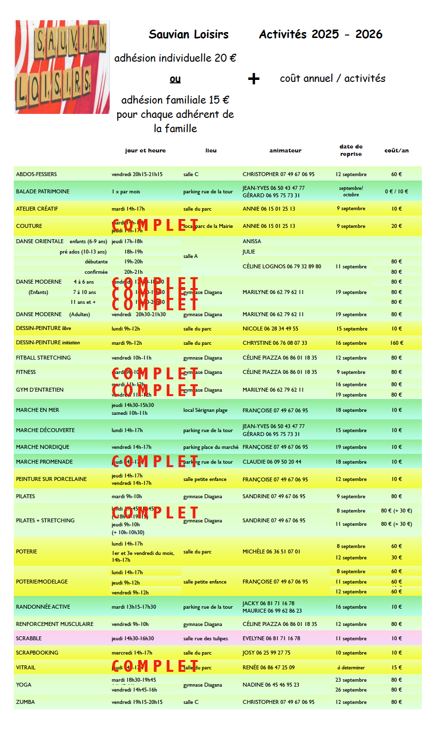 Téléthon de Sauvian-Loisirs 2020 et 2019